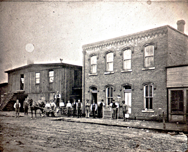 Magic Lantern #84 - 1880 the sixth Street planing mail. The brick building located were Isaly's dairy store [Bricker's] is now. The frame building on site of what will become the American theater. Operated by W. L. Smith.